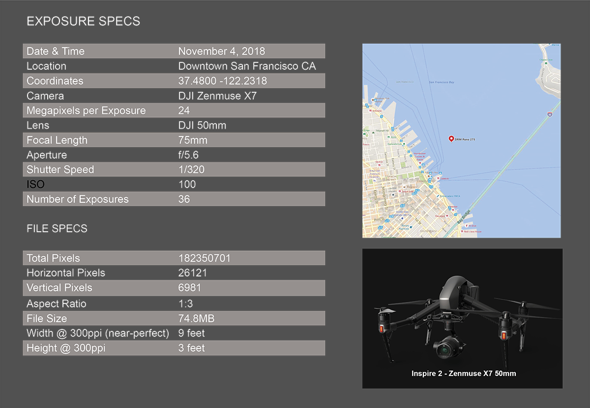Michael Worley CREATED: November 03, 2018 Downtown San Francisco, California RESOLUTION: 182 megapixels This 182-megapixel DigitalRoamer Media LLC photo is one of the highest definition fine art photographs created with a resolution equivalent to 88 Full-HDTVs..